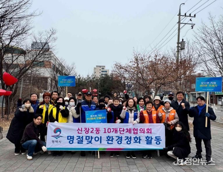 정안뉴스 안정주 기자 | 평택시 신장2동은 지난 10일 설 명절을 앞두고 주민자치회와 통장협의회를 비롯한 관내 10개 단체, 50여 명이 참여한 가운데 설맞이 민관합동 일제 대청소를 진행했다.