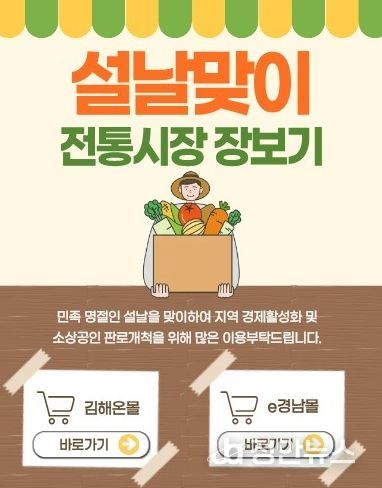 정안뉴스 김재홍 기자 | 김해시도시개발공사는 설 명절을 맞아 전통시장 및 골목상권 활성화를 위해 설맞이 전통시장 장보기 캠페인을 지난 1월 26일부터 2월 8일까지 2주간 추진했다고 밝혔다.