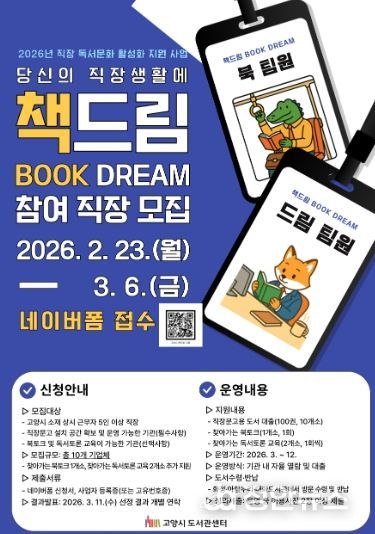 시 관계자는 “직장 안에서 자연스럽게 책을 접할 수 있는 환경을 만드는 것이 독서문화 확산의 중요한 출발점”이라며, “책드림 사업을 통해 직장인이 일상 속에서 부담 없이 독서를 경험하고, 자발적인 독서문화로 이어지길 기대한다”라고 밝혔다.