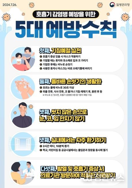 현재까지 인플루엔자 유행이 지속되고 있어, 일상생활에서 기침 예절 실천, 올바른 손 씻기, 실내 환기, 의심 증상 발생 시 신속한 의료기관 방문 등 예방수칙을 철저히 지켜야 한다.