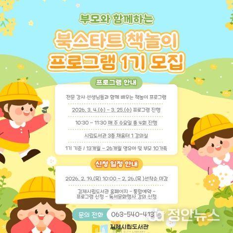 정안뉴스 안정주 기자 | 김제시립도서관은 2026년을 맞아 영·유아의 책과 첫 만남을 돕고, 부모와 아이가 함께 즐길 수 있는 독서문화를 조성하기 위해 ‘부모와 함께하는 북스타트 책놀이 프로그램 1기’를 진행한다고 밝혔다.
