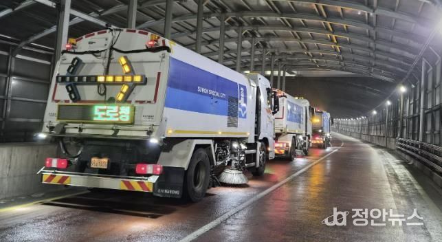 정안뉴스 안정주 기자 | 수원시 영통구는 지난 11일 설 명절을 맞아 귀성객들에게 쾌적하고 안전한 도로 환경을 제공하기 위해 주요 도로 구간에 대한 노면 청소차량 합동 작업을 실시했다.