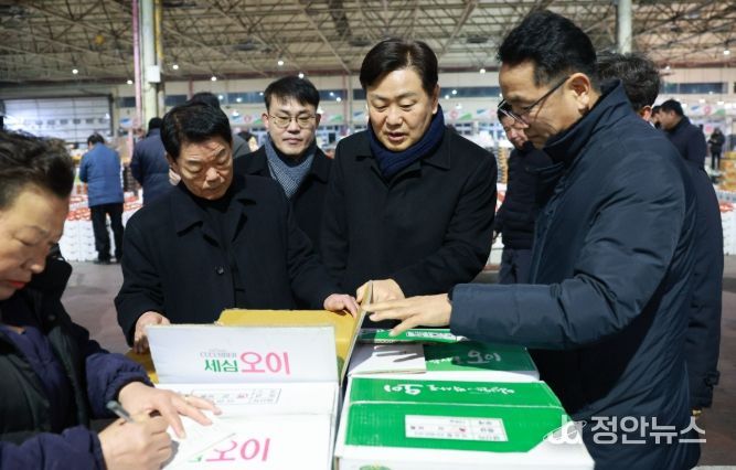 김 지사는 사과, 배, 딸기 등 명절 수요가 집중되는 주요 성수품을 중심으로 최근 기상 여건과 작황 영향, 산지 출하 물량 확보 상황, 소비 동향 등을 현장에서 확인하고, 유통 종사자들로부터 시장 운영 여건과 애로사항을 청취했다.