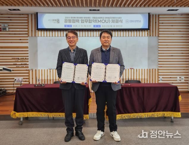 정안뉴스 안정주 기자 | 군산시 청년뜰(청년센터·창업센터)과 국립군산대학교 대학일자리플러스센터가 국립군산대학교 재학생·졸업생을 포함한 지역 청년들에게 실질적인 취업 지원 서비스를 제공하기 위한 업무협약(MOU)을 12일 체결했다