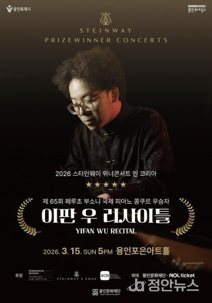 정안뉴스 안정주 기자 | 용인문화재단은 오는 3월 15일 오후 5시, 용인포은아트홀에서 ‘2026 스타인웨이 위너콘서트 – 이판 우 리사이틀’을 개최한다고 밝혔다.