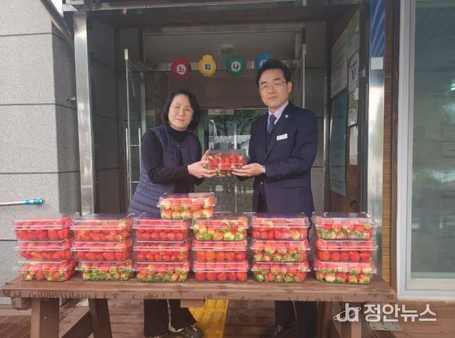 정안뉴스 안정주 기자 | 고창군 체류형 농업창업지원센터가 공동실습하우스에서 재배한 딸기를 지난 12일 성내면 느티나무 장애인거주시설에 전달했다.