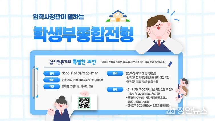 정안뉴스 안정주 기자 | 전북특별자치도전주교육지원청이 관내 중·고등학생과 학부모, 교원을 대상으로 변화하는 대입에 대비한 진학 지원에 나섰다.