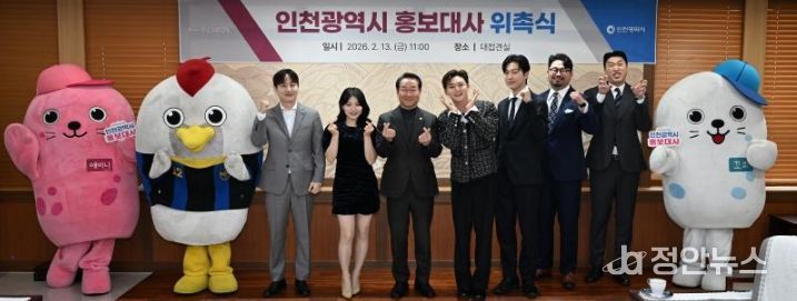 정안뉴스 안정주 기자 | 인천광역시는 2월 13일 인천 유나이티드 FC 서포터스, 가수 허각·이도진·유수현, 아나운서 정영한, 코미디언 송하빈, 인플루언서 최승열(활동명: hotdor_s), 시민 김주현 등 8팀을 인천시 홍보대사로 위촉했다.
