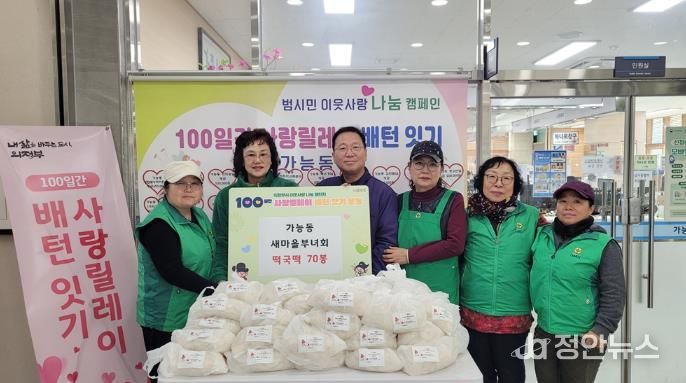 가능동 새마을부녀회는 한파로 더욱 힘든 시기를 보내고 있는 이웃들에게 온정을 전하고자 떡국떡을 마련했다. 이번 나눔을 비롯해 김치, 고추장 등 다양한 물품을 꾸준히 지원하며 지역사회 나눔 문화 확산에 앞장서고 있다.