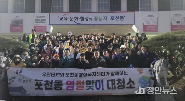 정안뉴스 안정주 기자 | 포천동 행정복지센터는 지난 12일 설 명절을 앞두고 유관단체 및 행정복지센터 직원들과 함께 설맞이 일제 대청소를 실시했다.