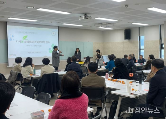 정안뉴스 안정주 기자 | 경기도수원교육지원청은 2월 12일부터 2월 13일까지 이틀간 YBM연수원에서 수원 다시봄 화해중재단 역량강화 연수를 15시간 진행했다.