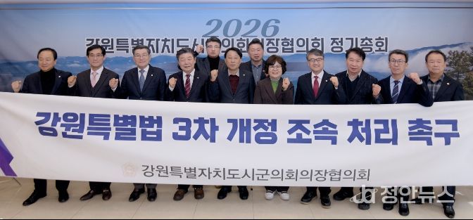 정안뉴스 안정주 기자 | 2026년 강원특별자치도시군의회의장협의회 정기총회가 13일 춘천 세종호텔에서 열렸다.