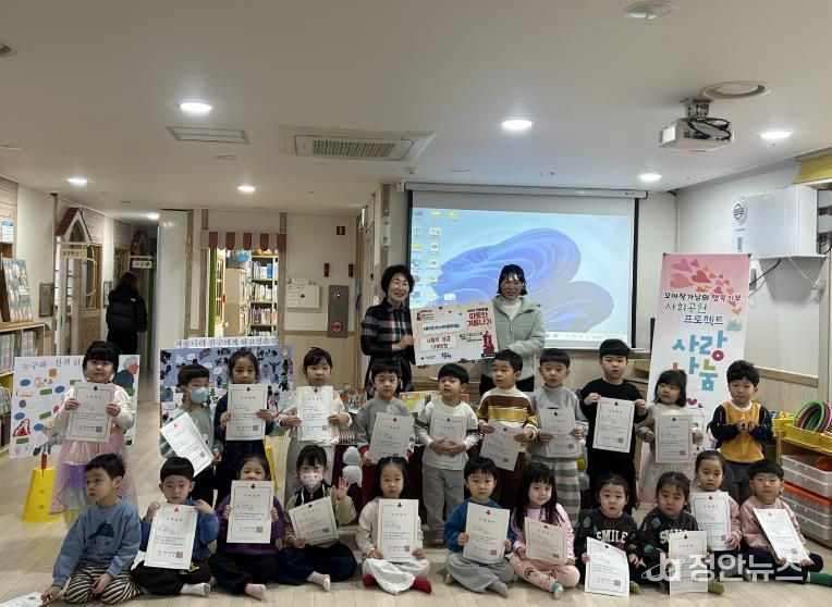 정안뉴스 안정주 기자 | 서울 동대문구는 답십리1동 래미안위브어린이집 원아들이 직접 만든 그림책 판매 수익금 129만 원을 ‘희망온돌 따뜻한 겨울나기’ 나눔에 기부했다고 밝혔다. 아이들이 ‘내가 만든 책’을 두 손으로 받아 들고, 그 책이 다시 ‘누군가의 겨울’로 이어지는 경험을 했다는 점에서 지역사회에도 따뜻한 울림을 남겼다.