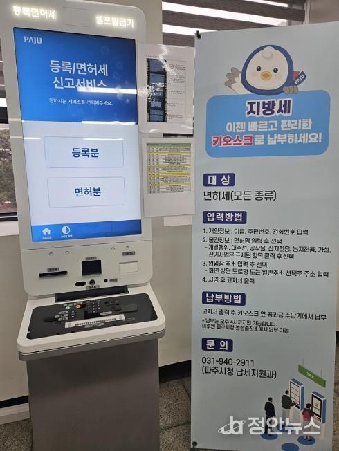 정안뉴스 안정주 기자 | 파주시는 납세자가 여러 기관을 오가야 했던 기존 세금 신고 절차의 불편을 해소하고자 파주시청 민원동과 파주등기소에 무인민원발급기 운영을 개시한다.