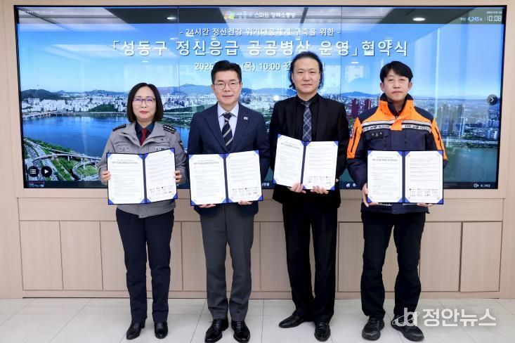 구는 이를 위해 지난 2월 12일 성동구청에서 성동경찰서, 성동소방서, 마인드웰병원과 함께 24시간 성동 정신응급 공공병상 운영’을 위한 업무협약을 체결하고, 정신응급 발생 시 신속한 대응이 가능한 협력 체계를 구축했다.