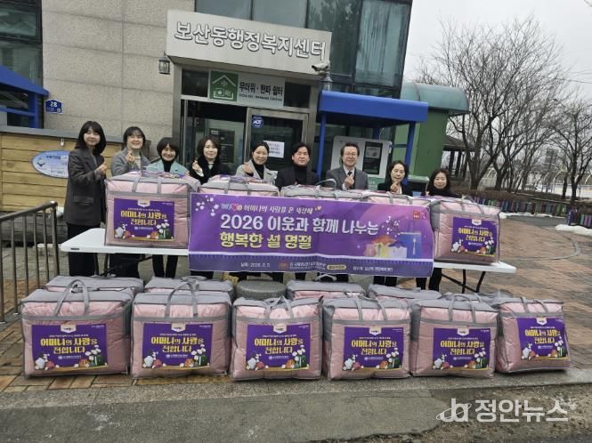 정안뉴스 안정주 기자 | 사단법인 국제위러브유운동본부는 최근 보산동 행정복지센터를 방문해 겨울철 한파 대비를 위한 이불 30세트를 기탁했다.