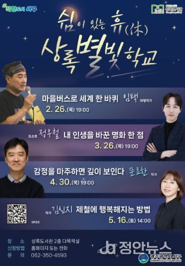 정안뉴스 안정주 기자 | 광주광역시 서구는 지역 주민에게 사유와 위로의 시간을 제공하기 위해 인문학 프로그램 ‘상록별빛학교’를 운영한다.