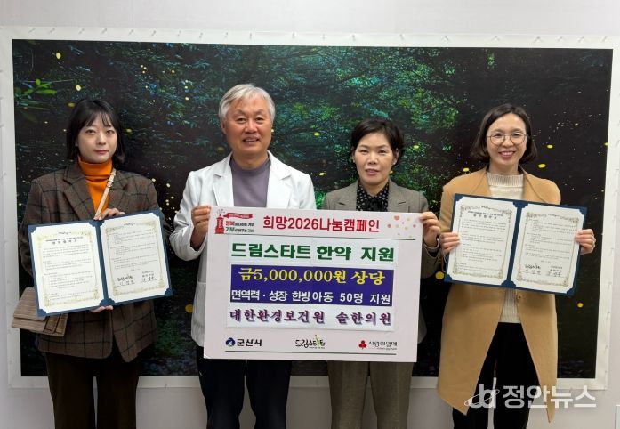 협약을 마친 ‘드림 아이 한방 케어’ 사업은 2026년 3월부터 12월까지 운영되며, 면역력 저하 또는 성장 지연이 우려되는 4~12세 드림스타트 아동 50명을 대상으로 진행될 예정이다.
