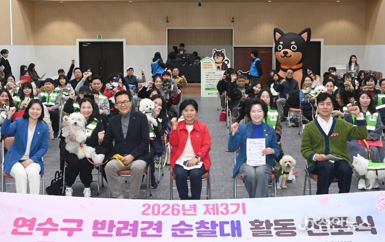 정안뉴스 안정주 기자 | 연수구는 지난 21일 구청 대회의실에서 반려견순찰대 ‘연수지킴댕댕이’ 활동 선포식을 열고 3기 순찰대원을 공식 위촉했다.