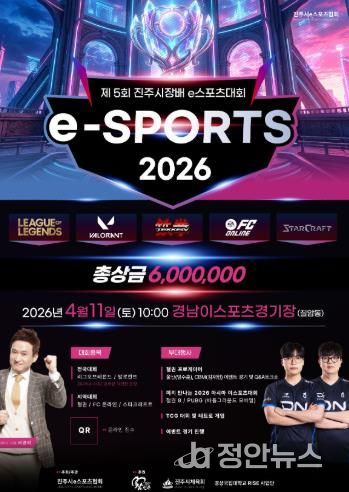 정안뉴스 김재홍 기자 | 진주시는 오는 11일 경상국립대학교 칠암캠퍼스 100주년 기념관에 있는 경남 이(e)스포츠 상설경기장에서 ‘2026 진주 아마추어 e스포츠 대회’를 개최한다고 밝혔다.