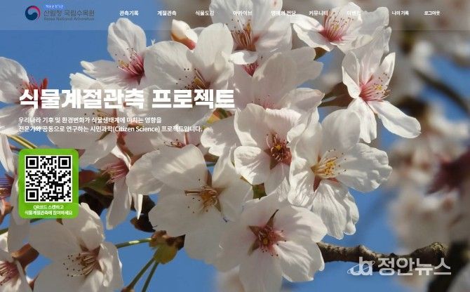 정안뉴스 안정주 기자 | 산림청 국립수목원은 국가생물종지식정보시스템을 통해 4월 3일부터 ‘식물계절관측 서비스’를 개시한다고 밝혔다.