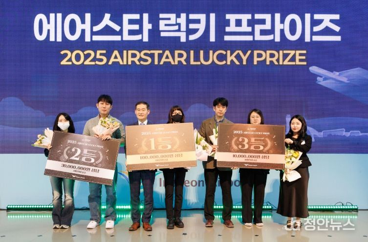 정안뉴스 안정주 기자 | 인천국제공항공사는 지난달 27일 오후 인천공항 제2여객터미널 그레이트홀에서 인천공항 면세점 모바일 어플리케이션(AIRSTAR DUTYFREE) 이용객을 대상으로 ‘1억 원의 순금별을 잡아라!’ 시그니처 이벤트 시상식을 개최했다고 밝혔다.
