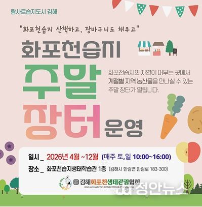 정안뉴스 김재홍 기자 | 김해시는 연말까지 화포천습지 생태학습관에서 주말장터가 운영된다고 3일 밝혔다.