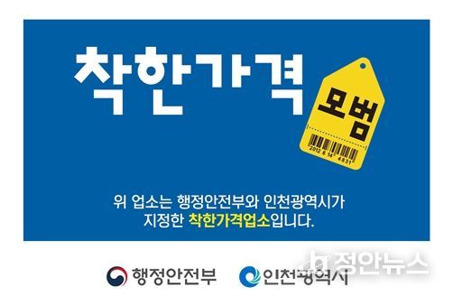 정안뉴스 안정주 기자 | 인천광역시는 물가안정의 든든한 버팀목인‘착한가격업소’확대를 위해 4월 6일부터 5월 8일까지 ‘착한가격업소’신규 업소를 모집한다고 밝혔다.