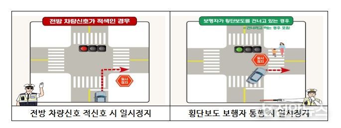 정안뉴스 안정주 기자 | 경찰청은 각 시·도 자치경찰위원회 등과 협조하여 4월 20일부터 6월 19일까지 2개월간 우회전 통행 방법 위반에 대해 집중단속을 한다.