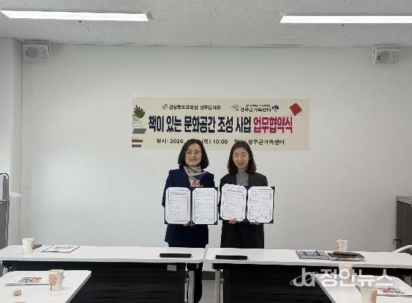 정안뉴스 안정주 기자 | 경상북도교육청 성주도서관은 4월 16일 성주군 가족센터에서 지역 생활밀착형 독서 환경 조성을 위한 '책이 있는 문화공간 조성'사업을 위한 업무협약을 체결했다.