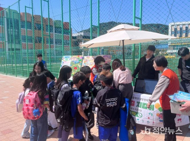 하굣길 학생들을 대상으로 아동학대 예방 홍보물을 배부하고, 아동학대 신고방법(112)과 관심의 필요성을 적극 홍보했다.