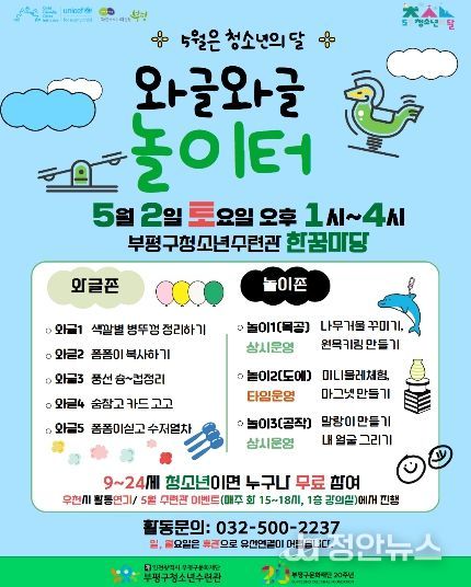 정안뉴스 안정주 기자 | 부평구청소년수련관은 오는 5월 2일 청소년 체험 행사 ‘와글와글 놀이터’를 운영한다고 밝혔다.