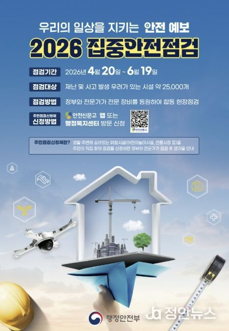 정안뉴스 안정주 기자 | 구리시는 시민 안전 확보를 위해 4월 20일부터 6월 19일까지 두 달간 ‘2026년 집중 안전 점검’을 본격 추진한다고 밝혔다.