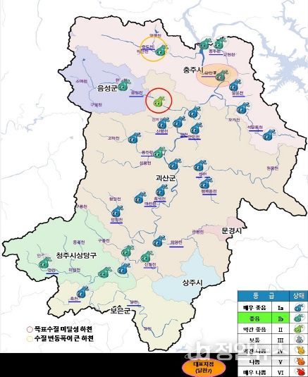 정안뉴스 안정주 기자 | 지난 ‘24년 9월 충북도가 수질오염과의 전쟁을 선포한 이후, 2032년까지 ’도내 하천 수질 1등급‘ 목표 달성을 위하여 『충청북도 수질환경개선 추진계획』을 수립해 추진한 결과, 충북 주요 하천의 BOD기준 수질개선이 확인됐다.