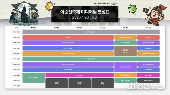 고영이 관광진흥과 과장은 “이순신축제 기간 동안 곡교천 행사와 함께 여해나루에서도 더욱 풍성한 즐길거리를 제공하기 위해 다양한 관광 콘텐츠와 프로그램을 기획했다”며 “앞으로도 아산에 머무를 수 있는 체류형 관광 활성화를 위해 지속적으로 노력하겠다”고 말했다.