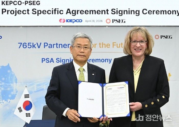정안뉴스 안정주 기자 | 한국전력이 4월 28일 서울 양재동 한전 아트센터에서 미국 에너지기업 PSEG社와 765kV 초고압 송전망 사업 협력을 위한 계약을 체결했다.
