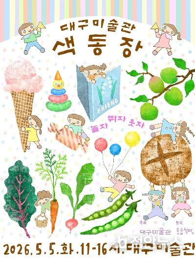 정안뉴스 안정주 기자 | 대구미술관은 가정의 달을 맞아 5월 5일 온 가족이 예술 안에서 즐겁게 소통할 수 있는 특별 이벤트 ‘놀자, 뛰자, 웃자-색동장’을 개최한다. 이날 미술관은 무료로 개방되며, 전시 관람부터 체험, 장터까지 다채로운 프로그램이 펼쳐진다.