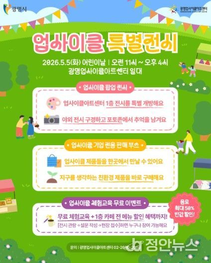 정안뉴스 안정주 기자 | 광명시 광명업사이클아트센터는 오는 5월 5일 어린이날을 맞아 자원순환 가치를 예술과 체험으로 즐기는 ‘업사이클 특별전시’를 운영한다.