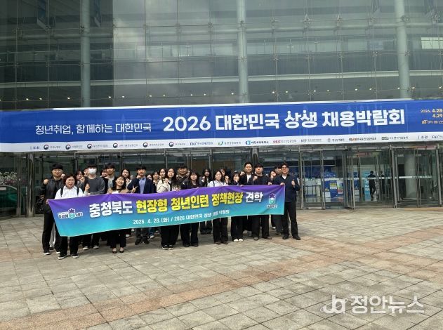 정안뉴스 안정주 기자 | 충북도는 28일 도내 현장형 청년인턴 34명을 대상으로 서울 aT센터에서 열린 ‘2026 대한민국 상생 채용박람회’에서 정책현장견학을 실시했다.