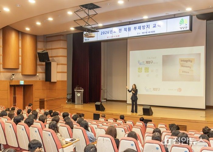 정안뉴스 안정주 기자 | 인천광역시 계양구가 청렴한 공직문화 조성을 위해 28일 구청 대강당에서 ‘2026년 전 직원 부패방지교육’을 실시했다.