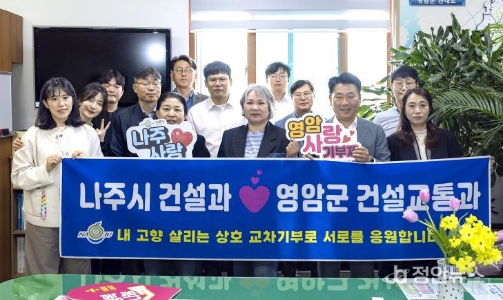 정안뉴스 안정주 기자 | 전남 나주시 건설과와 영암군 건설교통과는 고향사랑기부제 활성화와 지역 간 상생협력을 위해 지난 28일 ‘2026 고향사랑기부제 상호 교차 기부’ 행사를 가졌다고 29일 밝혔다.