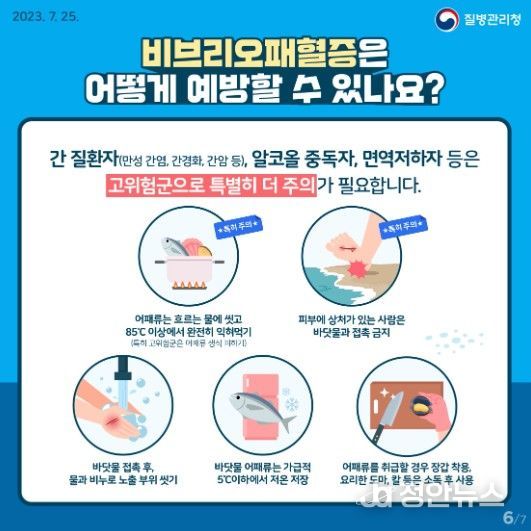 광양시 관계자는 “비브리오패혈증은 어패류 섭취와 해양 활동 시 예방수칙을 지키는 것이 중요하다”며 “특히 간질환자, 만성질환자, 면역저하자 등은 치사율이 50% 내외로 높아 각별한 주의가 필요하다”고 말했다.