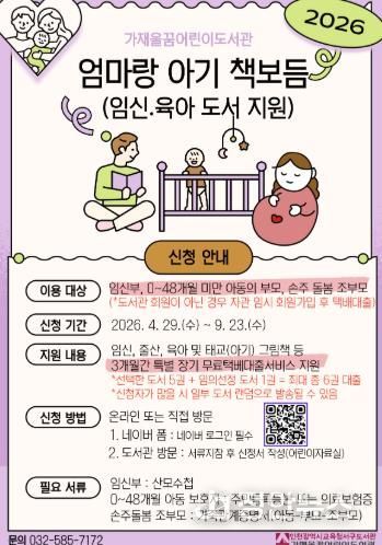정안뉴스 안정주 기자 | 인천광역시교육청서구도서관은 29일부터 임산부와 초보 양육자를 대상으로 ‘엄마랑 아기 책보듬’서비스를 시작한다.