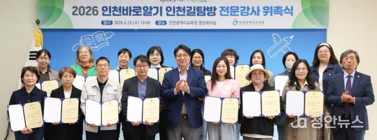 정안뉴스 안정주 기자 | 인천광역시교육청은 29일 인천바로알기 관계자 30여 명을 대상으로 ‘2026 인천바로알기 인천길탐방 전문강사 위촉식’을 개최했다.