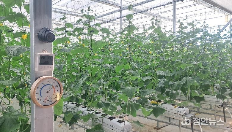 정안뉴스 안정주 기자 | 천안농업기술센터가 운영하는 스마트팜 사관학교 청년농업인들이 올해 첫 오이를 수확했다고 30일 밝혔다.