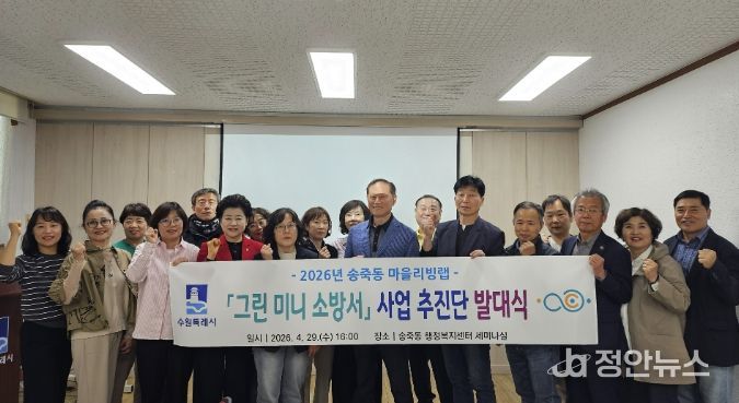 정안뉴스 안정주 기자 | 수원시 장안구 송죽동 주민자치회는 지난 29일, 2026년 마을리빙랩 실행계획의 일환으로 ‘송죽동 그린 미니 소방서’ 사업 발대식을 개최했다고 밝혔다.