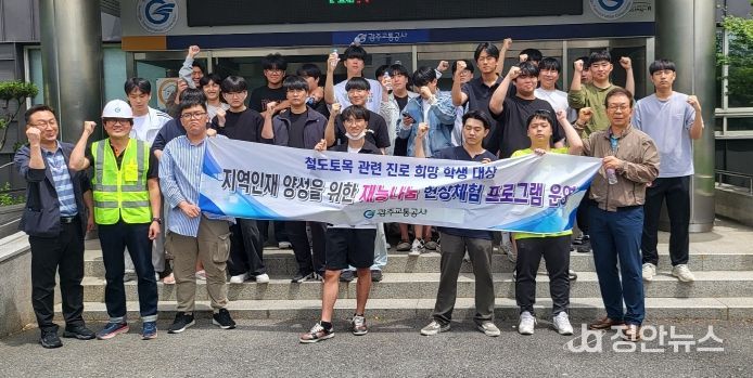 정안뉴스 박상욱 기자 | 광주교통공사는 27일 광주시 동구 용산차량기지에서 지역의 철도토목분야 진로를 희망하는 지역 고등학생들을 대상으로 ‘선로 시설물 유지관리 현장 진로체험’을 펼쳤다.