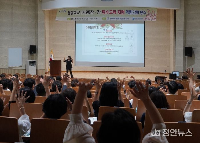 정안뉴스 박상욱 기자 | 광주시교육청이 20일과 21일 양일간 광주교육시민협치진흥원 대강당에서 관내 통합학교 교(원)장·감 500여 명 대상으로 ‘특수교육 지원 역량강화 연수’를 실시했다.
