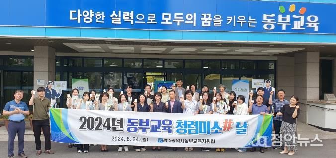 정안뉴스 박상욱 기자 | 광주동부교육지원청은 24일 청렴도 향상 종합 계획에 청렴 특색 사업으로 반영한 ’2024년 동부교육 청렴미소#의 날‘ 행사를 실시했다.