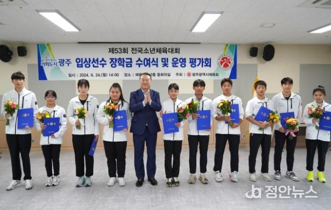 정안뉴스 박상욱 기자 | 광주광역시체육회는 미래의 체육 인재, 지역 꿈나무 선수들의 성장을 도모하기 위하여 제53회 전국소년체육대회 입상선수들에게 장학금을 수여했다.